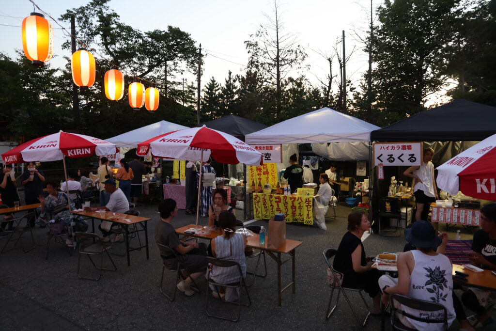 地元飲食店の露店が並ぶ