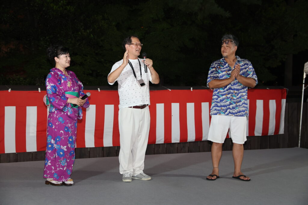 澤さんのステージが終わると、そのまま彼女の司会で盆踊りのレクチャーコーナーがスタート。トップバッターは豊浦音頭です。