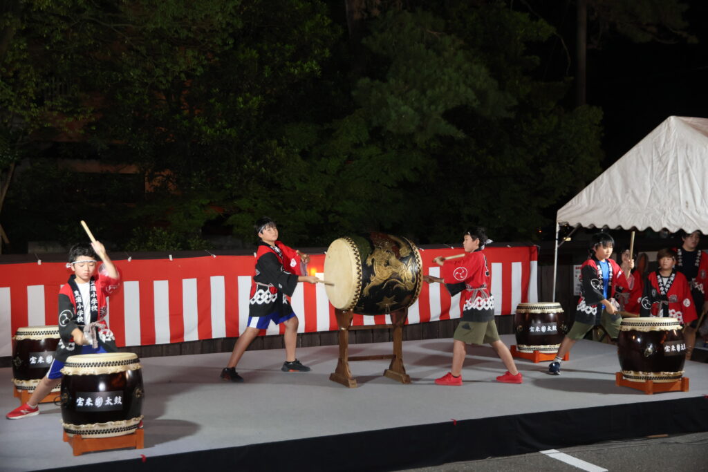 続いて越後音頭、休憩を挟んで月岡音頭でしめくくりです。月岡音頭の時には豊浦小学校の和太鼓も加わりました。暑い中、10分以上も叩き続けた子供たちの姿は本当にあっぱれでした。演奏が終わった瞬間、会場全体から大きな拍手が巻き起こりました。